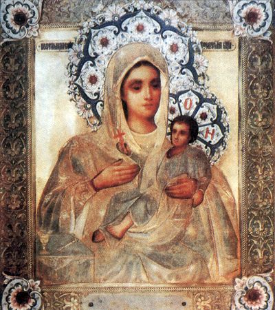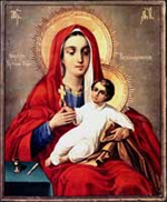 Козельщанская икона Божией МатериМать, решив ехать на следующий день, указывая на семейный образ Божией Матери, сказала дочери: "Маша, мы завтра едем в Москву, возьми образ Божией Матери, почисть Его ризу и покрепче помолись пред нашей Заступницей. Проси, пусть поможет нам благополучно совершить путь и излечить твою болезнь". Больная и сама, потеряв надежду на земных врачей, всю надежду возложила на Бога и вверила свою судьбу Небесной помощи. Икона эта издавна была известна как чудотворная. По преданию, она особенно помогала девушкам, прибегавшим к ней с мольбой устроить семейное счастье. При этом установился обычай, чтобы молящийся чистил ризу на иконе, протирая ее ватой или полотенцем. Прижав к груди святую икону, больная, с помощью матери, протерла ее и всю тяжесть недуга, скорбь и отчаяние души излила пред ликом Божией Матери. И усердная, пламенная молитва больной девочки была услышана. Она сразу почувствовала силу в руках и ногах и громко закричала: "Мама! мама! я чувствую ноги! Мама, я чувствую руки". Она сорвала металлические упорки н бинты и стала свободно ходить по комнате, продолжая держать благоговейно в своих руках образ Божией Матери. Немедленно приглашен был приходской священник и пред образом Божией Матери был совершен благодарственный молебен. Радостное событие сделалось скоро известным в окрестных селах. Мать поехала в Москву с выздоровевшей дочерью и взяла с собой святой образ Божией Матери. Слух об исцелении быстро распространился по Москве и народ стал стекаться сначала в номер гостиницы, а потом в церковь, куда перенесли икону. От иконы произошло еще несколько исцелений. Когда семья возвратилась домой в Козельщину, вся окрестность уже знала об исцелениях от Козельщанской иконы Божией Матери, совершившихся в Москве, и многие собрались для поклонения образу. Хранить далее икону в доме не было возможности, и, с разрешения. Высокопреосвященного Иоанна, архиепископа Полтавского, 23 апреля 1881 г. икона была перенесена в специально устроенную временную часовню. Каждый день с раннего утра не умолкало пред образом молебное пение и чтение акафистов.